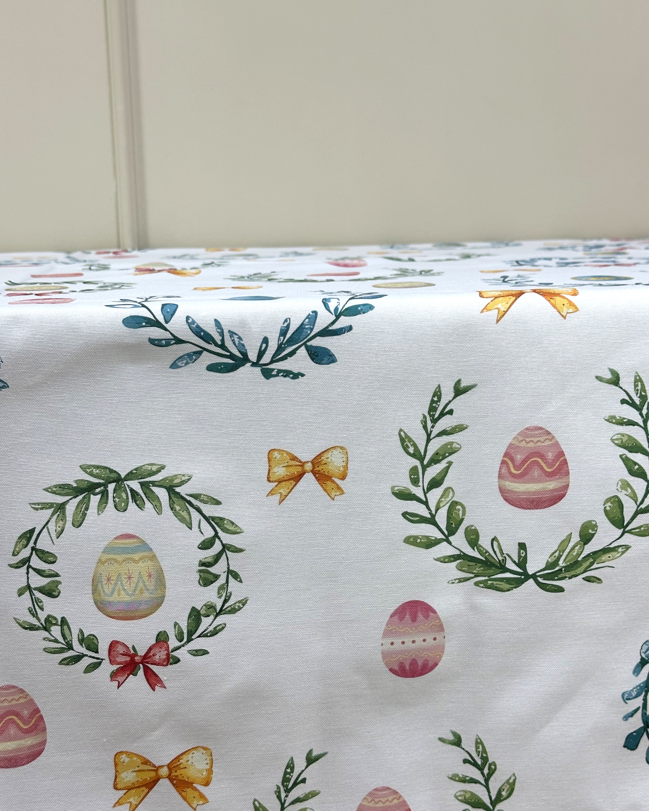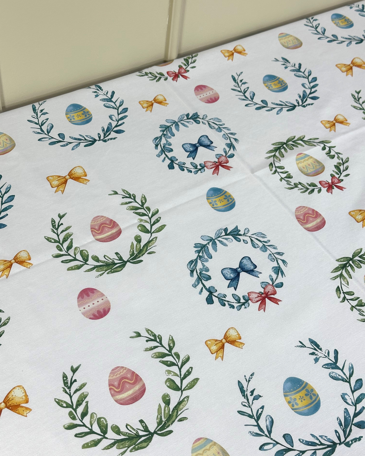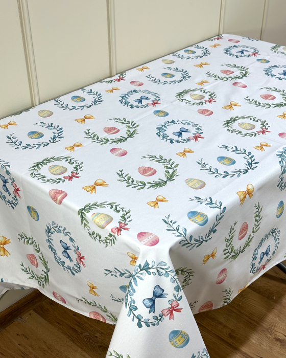 Față de masă impermeabilă cu model de Paște- Coronițe cu Ouă