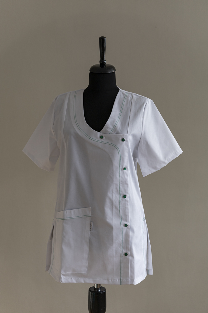 Halatul de damă NORA este confecționat din tercot de calitate superioară, un material rezistent, ușor de întreținut și plăcut la purtare. Cu un design modern, croială cambrată și cusături bine definite, acest model oferă o apariție îngrijită și profesională, ideal pentru medii medicale, centre de înfrumusețare, horeca sau activități de zi cu zi.