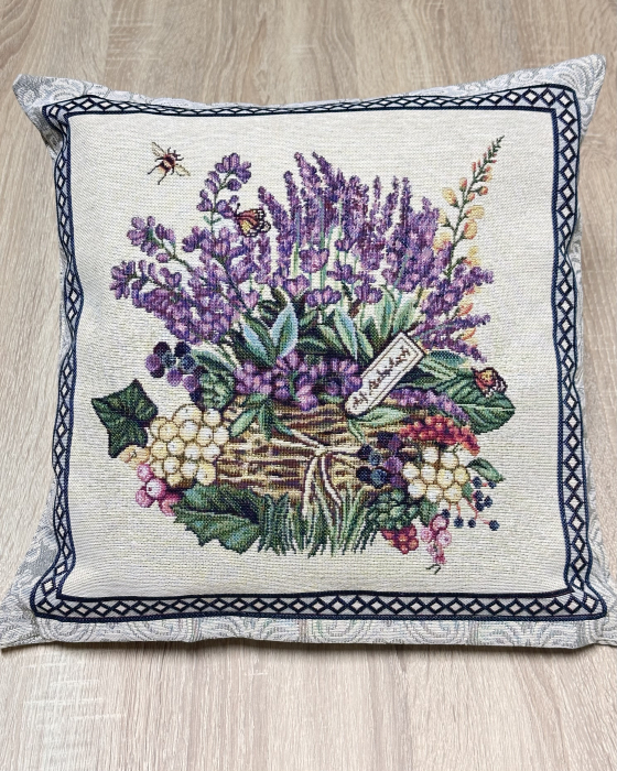 Față pernă din bumbac tip goblen, 40/40 cm, Lavandă de Primavară