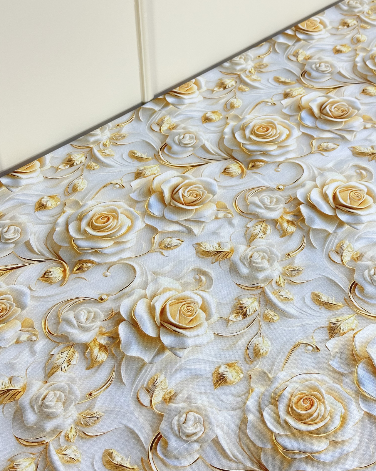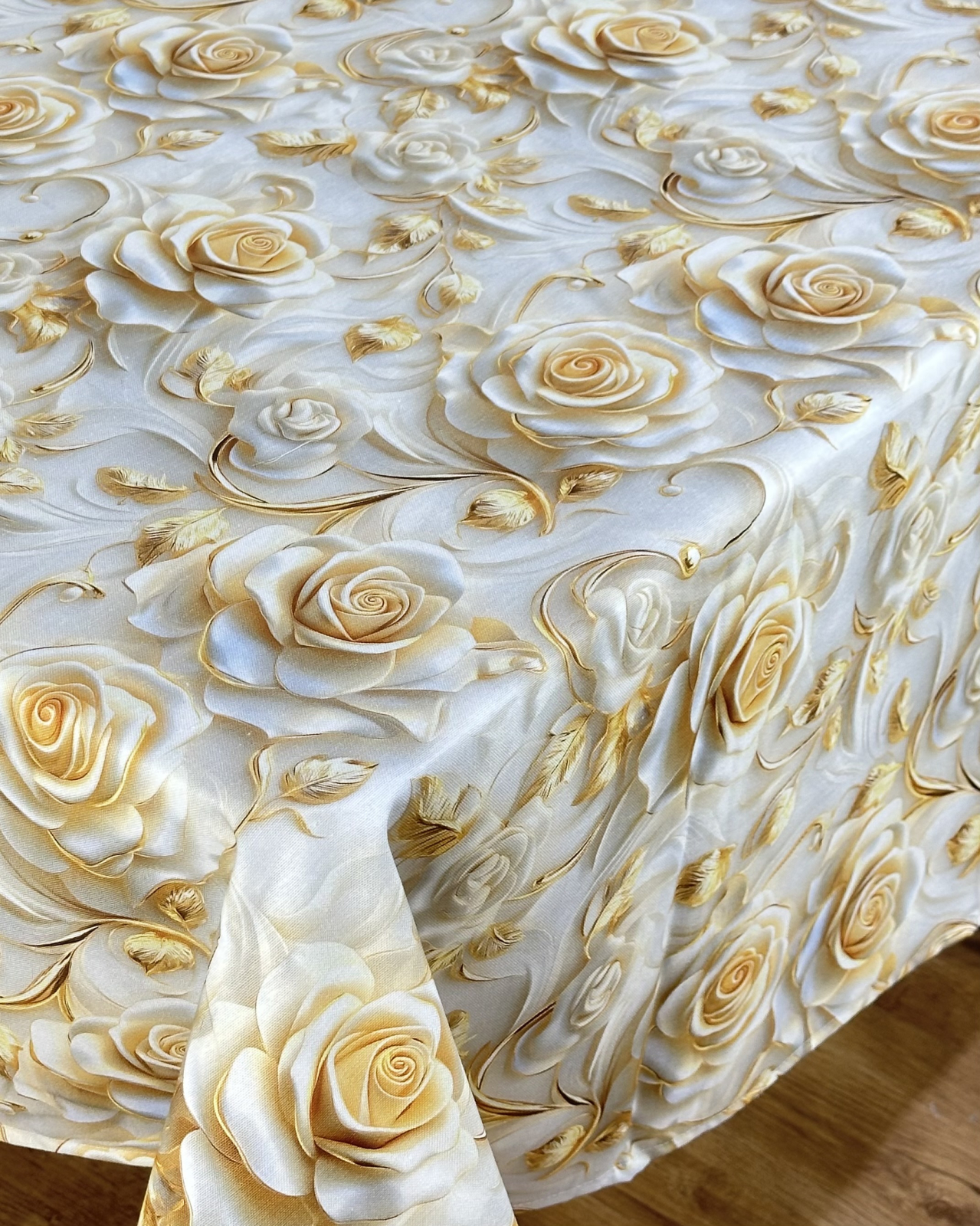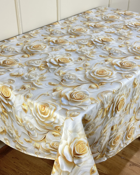 Față de masă impermeabilă, 100% bumbac - Trandafiri aurii