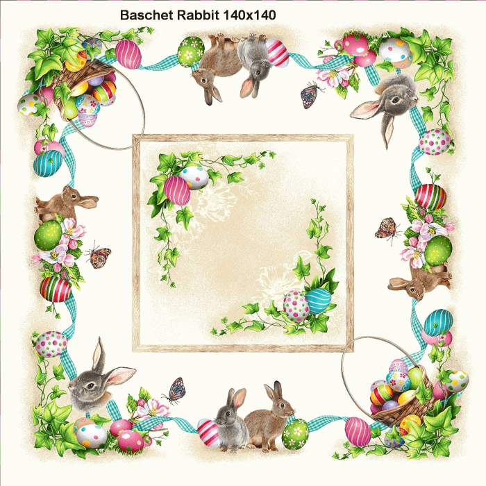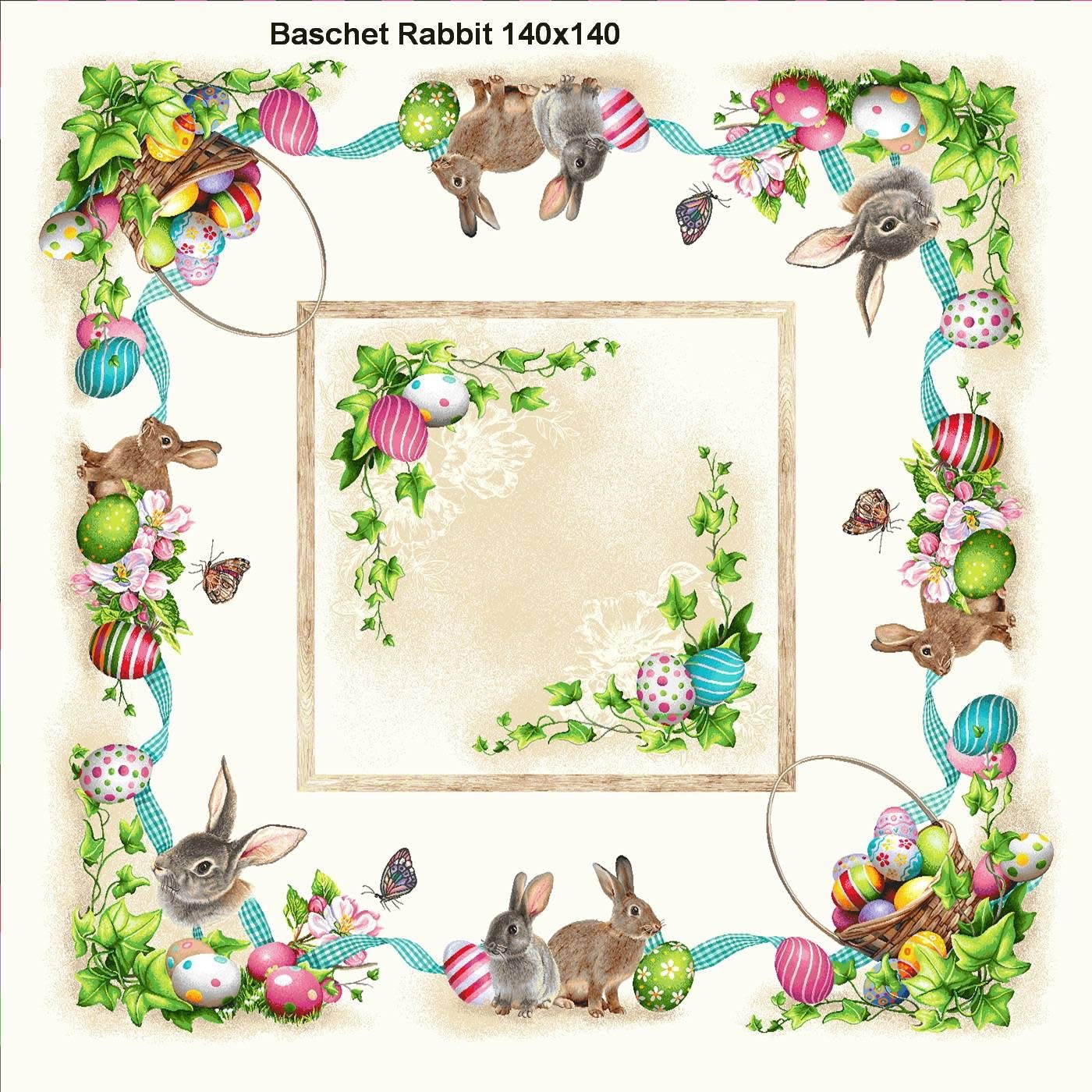 Față de masă din bumbac tip goblen, Iepurași și coșuri cu ouă