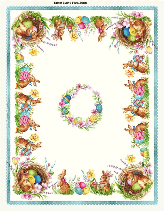 Față de masă din bumbac tip goblen, Iepurași în vizuină