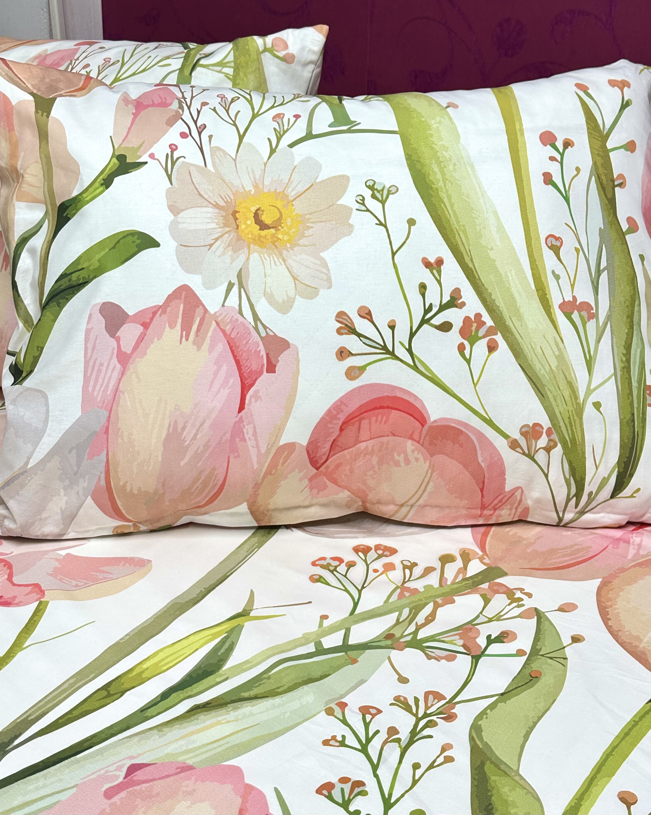 Față de pernă realizată din bumbac satinat de calitate, cu textură fină, netedă și plăcută la atingere.