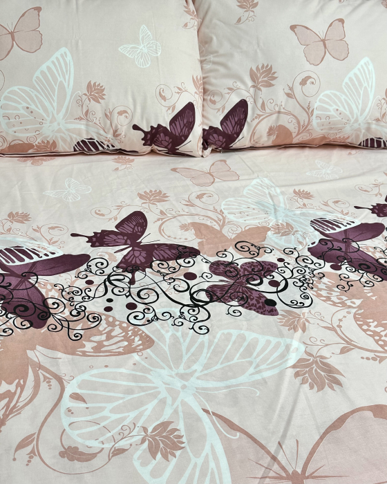 Husă de pat cu elastic din bumbac ranforce 100% - Fluturi roz