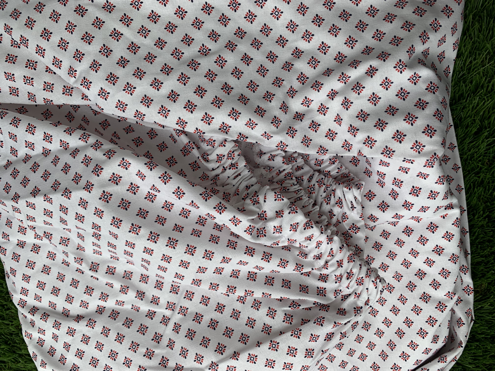 Husă de pat cu elastic din bumbac 100% ranforce, ideală pentru protecția și confortul saltelei.