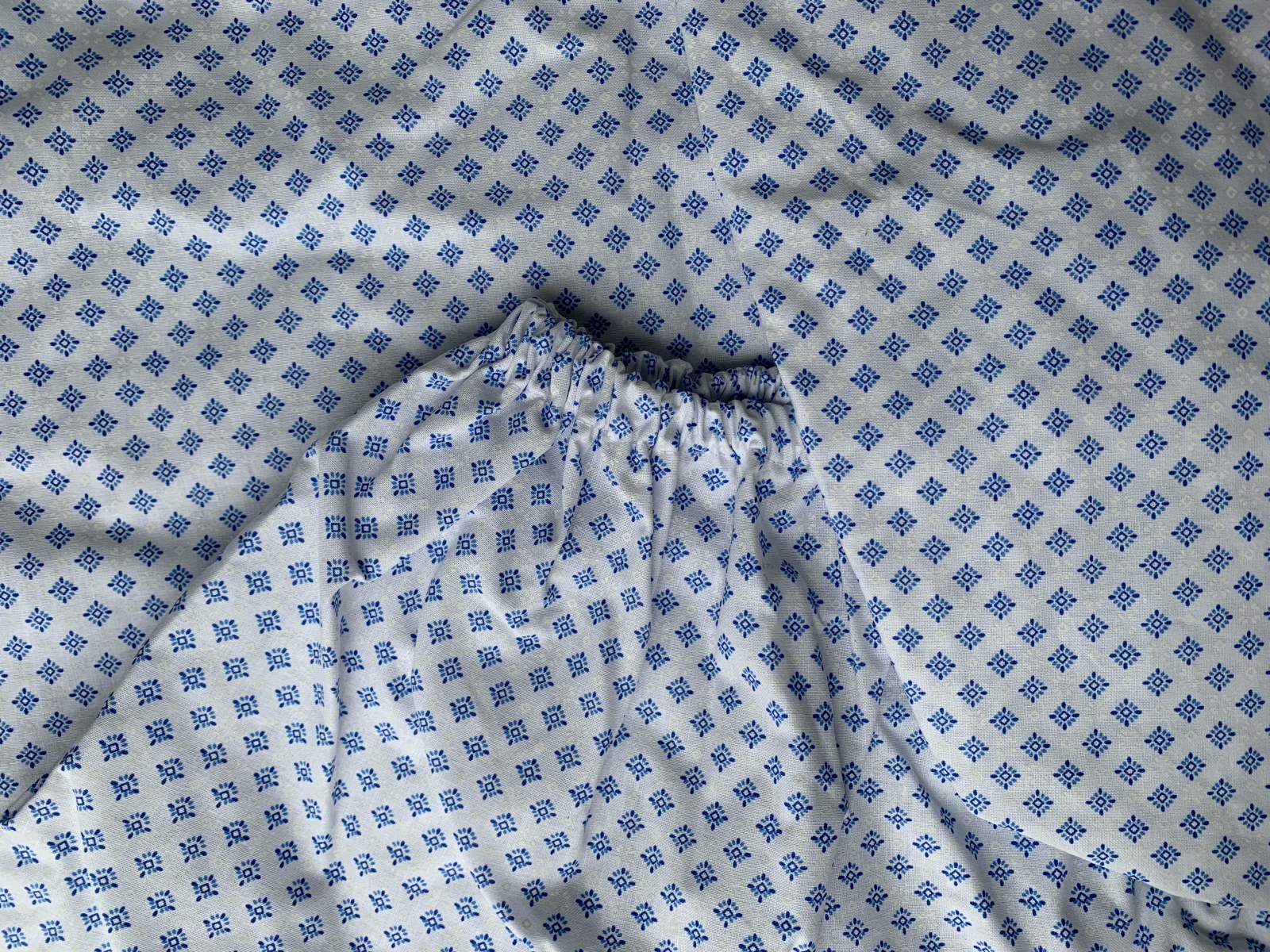 Husă de pat cu elastic din bumbac 100% ranforce, ideală pentru protecția și confortul saltelei.