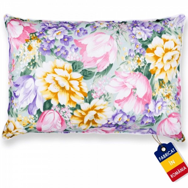 Pernă cu Puf și Pană de Gâscă, 50*70, Flori Mov