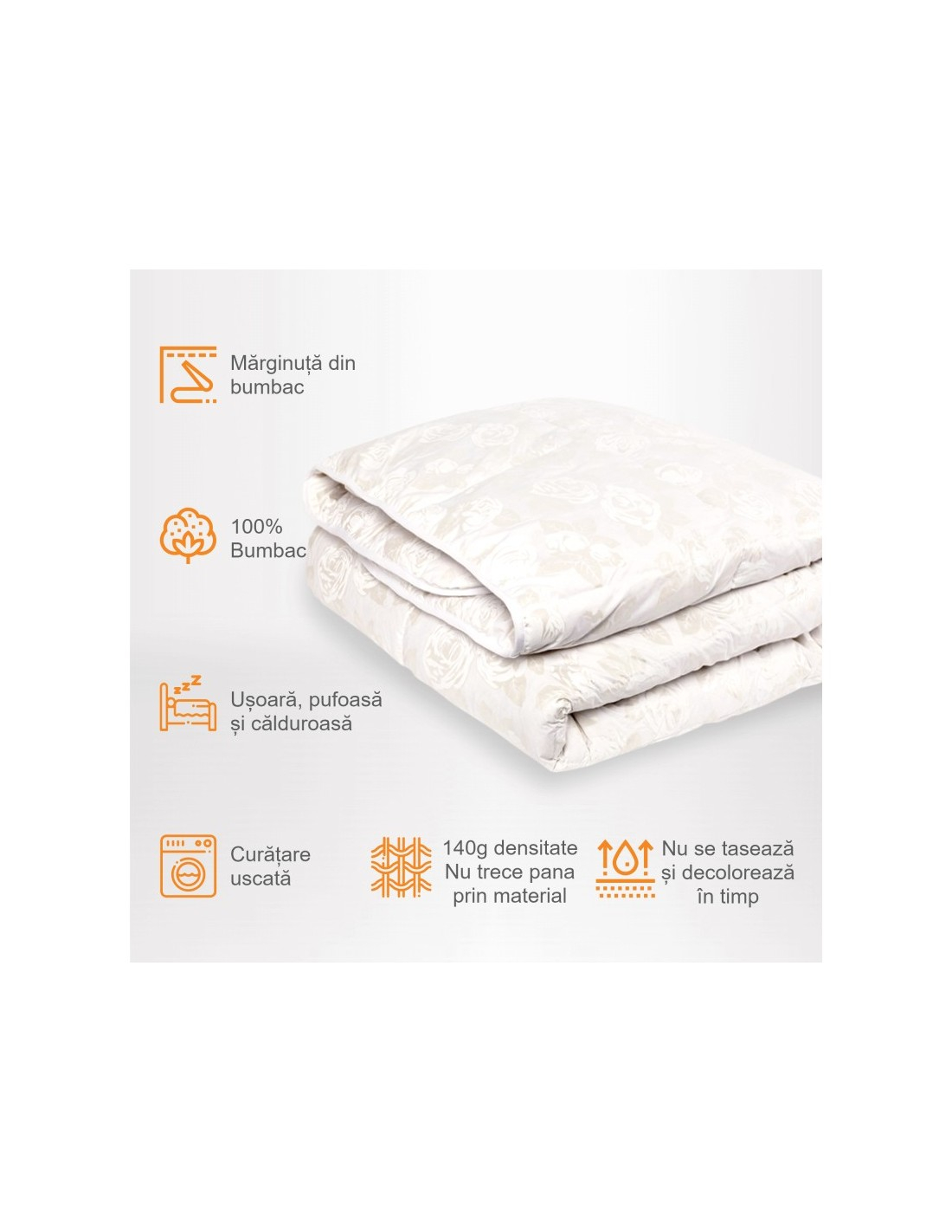 ✔ Umplutură naturală- 15% puf și 85% pană de gâscă