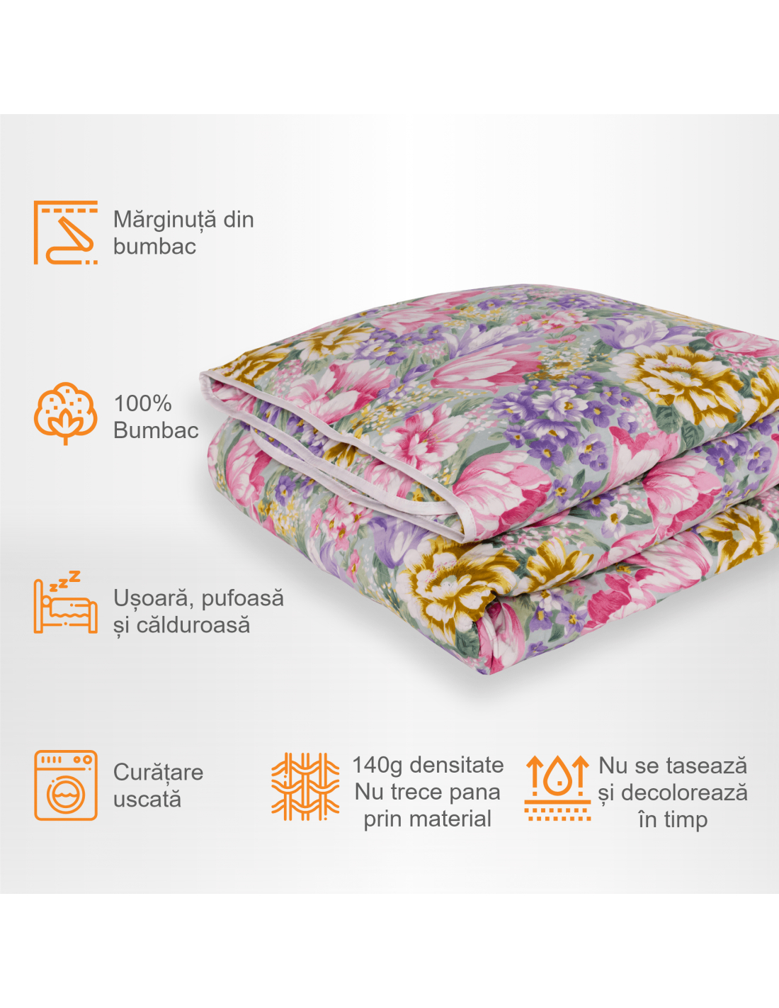 Pilotă cu 15% puf și 85% pană de Gâscă, Flori Mov