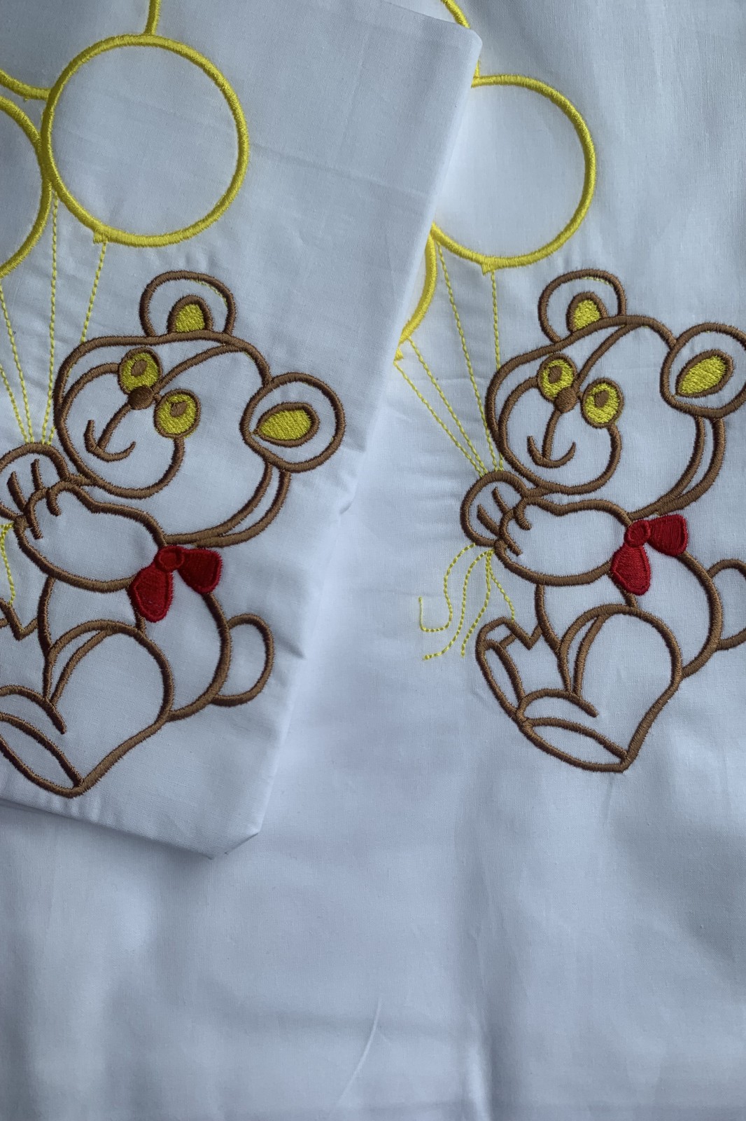 Lenjerie de pat bebe- Alb cu ursulet brodat